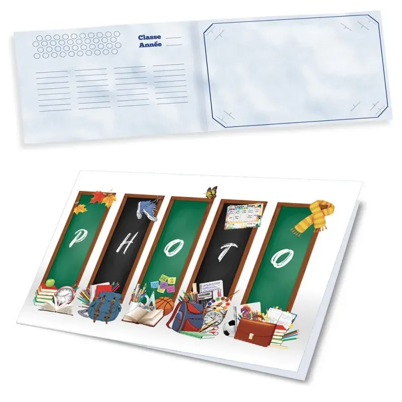 Vous voulez présenter une photo de classe dans un grand format ? Ce support en carton à triple encoche répondra à vos attentes ! En effet, à l’intérieur vous pouvez insérer un cliché en 18x24, 18x27 ou 20x30. Cela vous laisse donc le choix d’autant que sur notre site, nous mettons à votre disposition de nombreux modèles. Vous retrouvez divers thèmes : cinéma, nature, musique, sport, dessins pour les petits ...etc. Ainsi, il y en a pour toutes les tranches d’âge, de la maternelle au lycée !